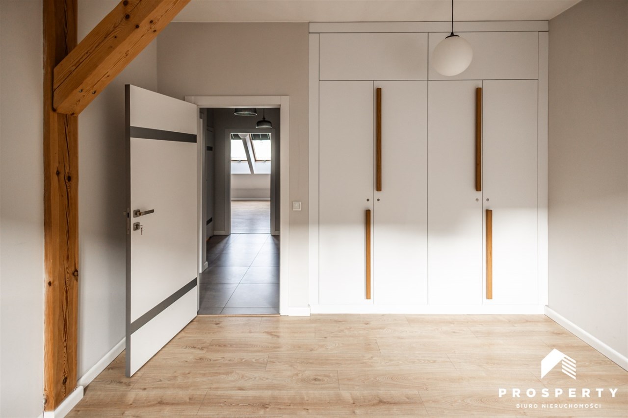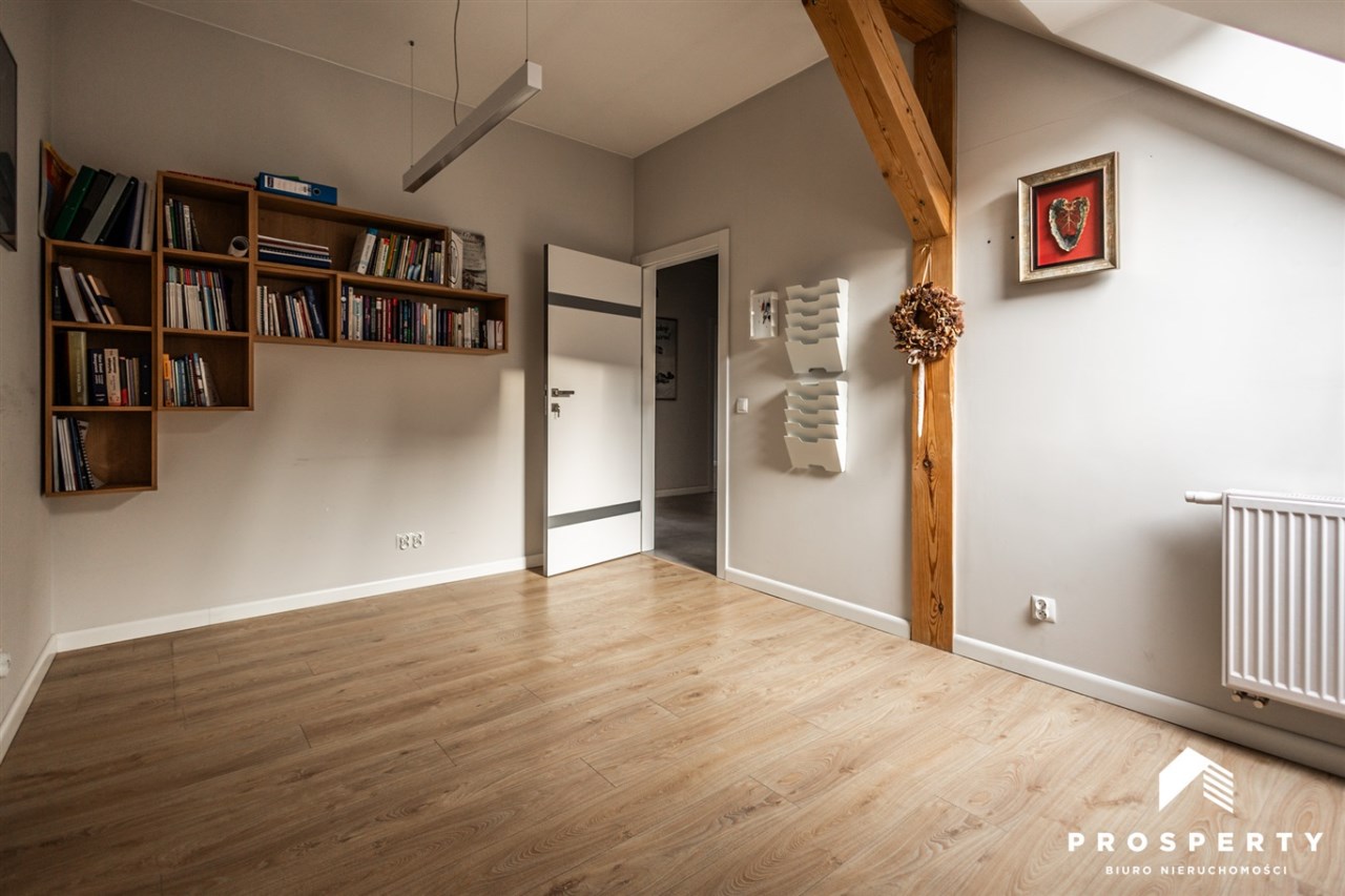 Wysokość pomieszczeń: ok. 2,6 m (miejscami skosy)