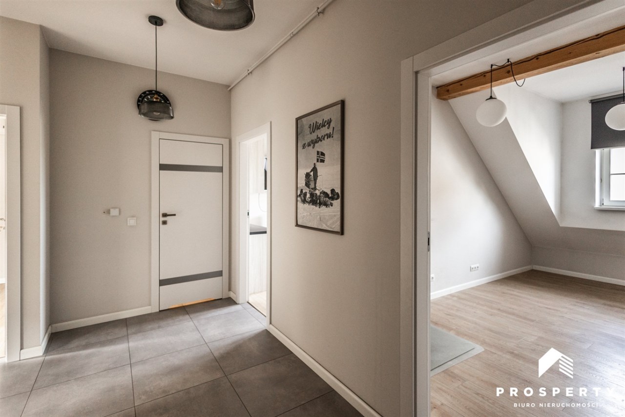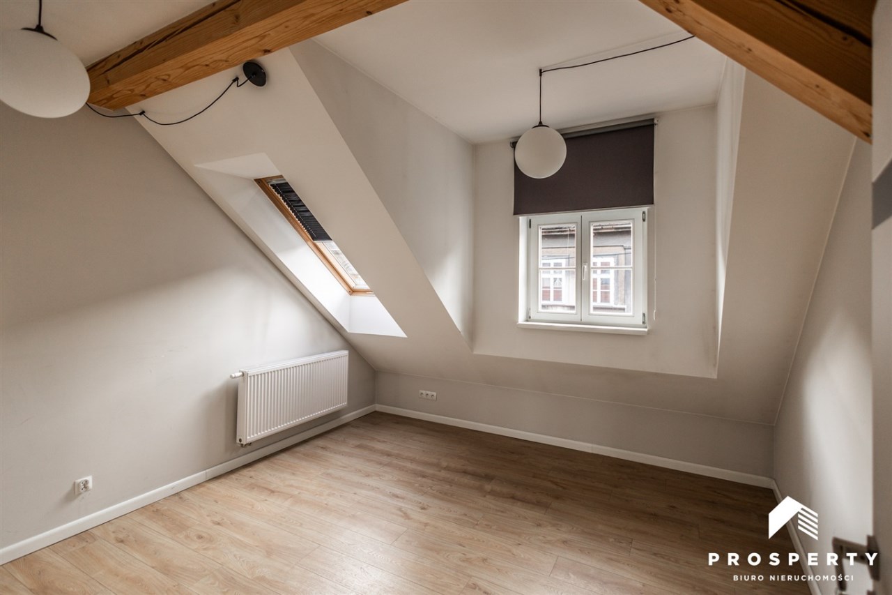 Na sprzedaż przestronne i jasne mieszkanie o powierzchni 70,86 m², położone na poddaszu odrestaurowanej kamienicy przy ul. Sobieskiego w Bielsko-Biała.