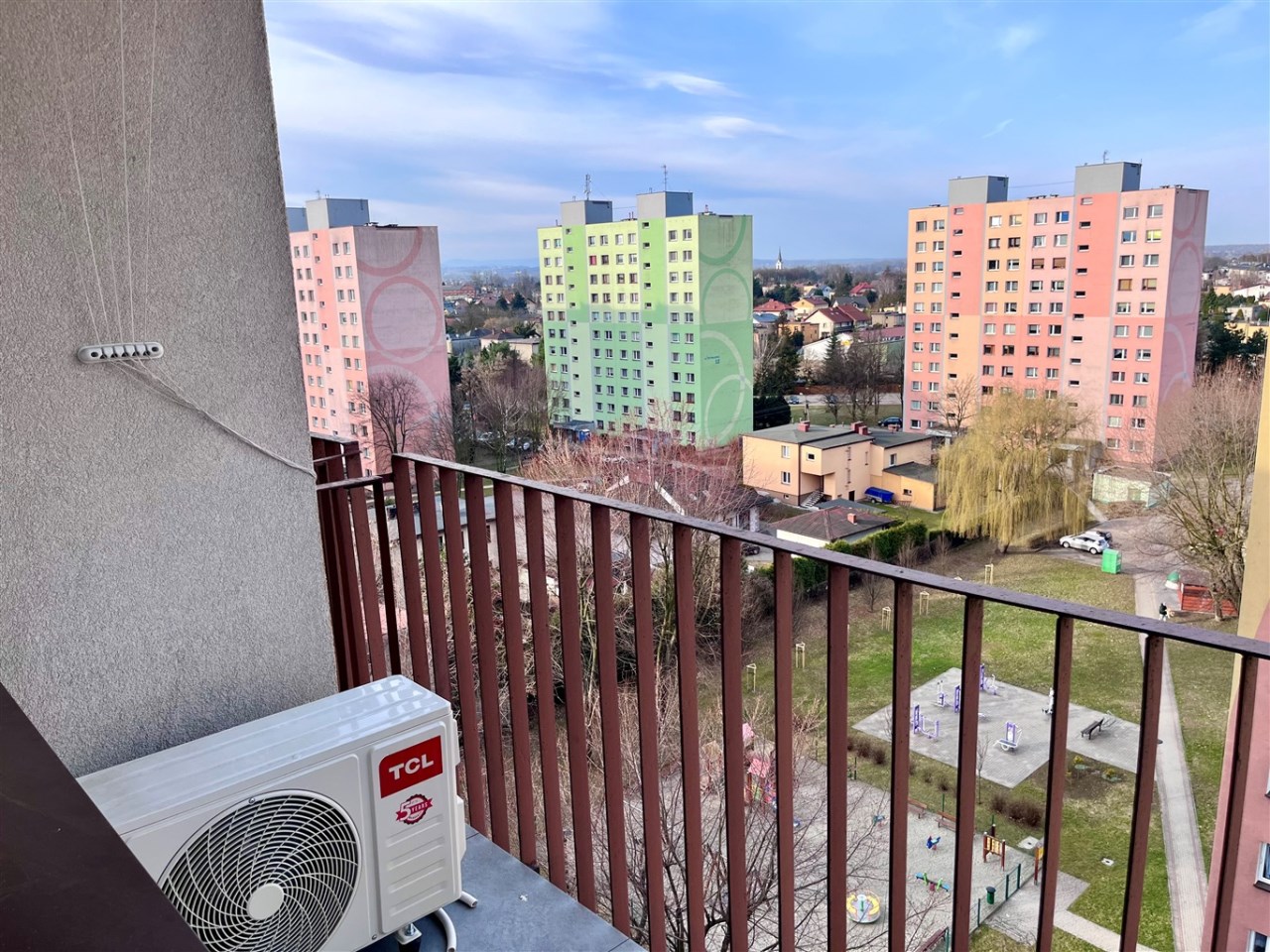 - balkon z widokiem na plac zabaw i siłownię plenerową